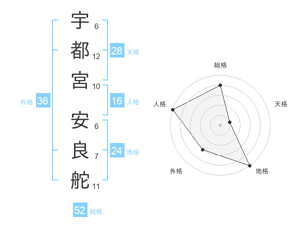 宇都宮 安良舵さんの総格は52画の4点!