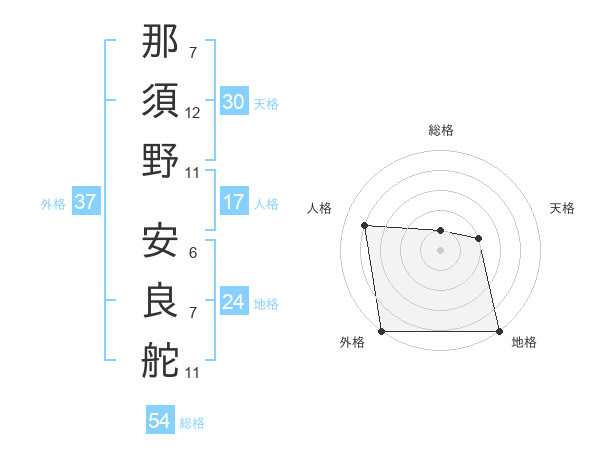 那須野 安良舵さんを姓名の画数から五運を鑑定