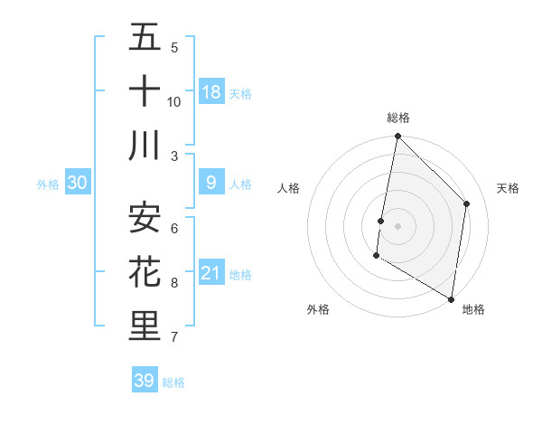 五十川 安花里さんの総格は39画の5点!