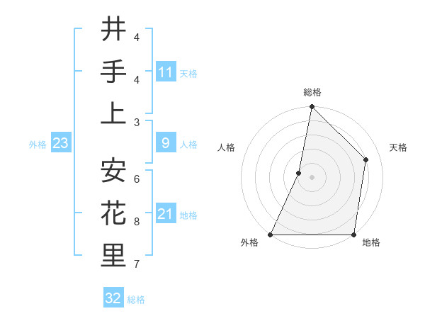井手上 安花里さんを姓名の画数から五運を鑑定