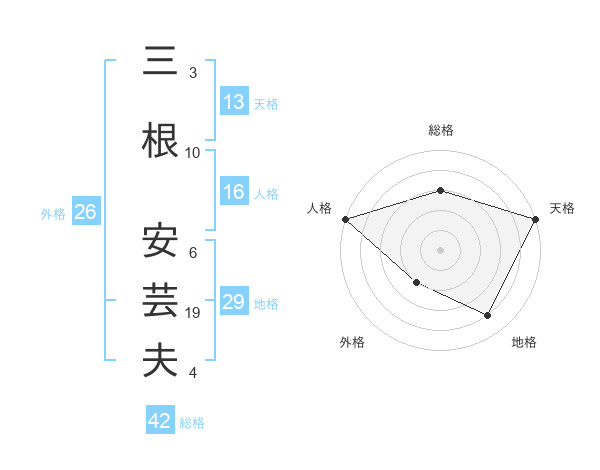 三根 安芸夫さんを姓名の画数から五運を鑑定