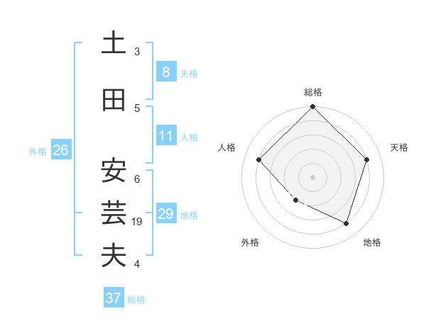 土田 安芸夫さんを姓名の画数から五運を鑑定