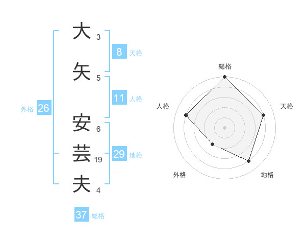 大矢 安芸夫さんを姓名の画数から五運を鑑定