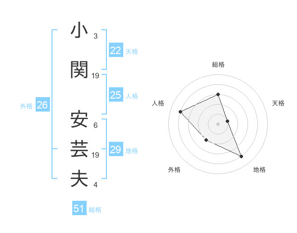 小関 安芸夫さんを姓名の画数から五運を鑑定