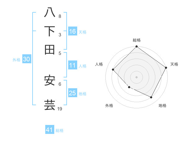 八下田 安芸さんを姓名の画数から五運を鑑定