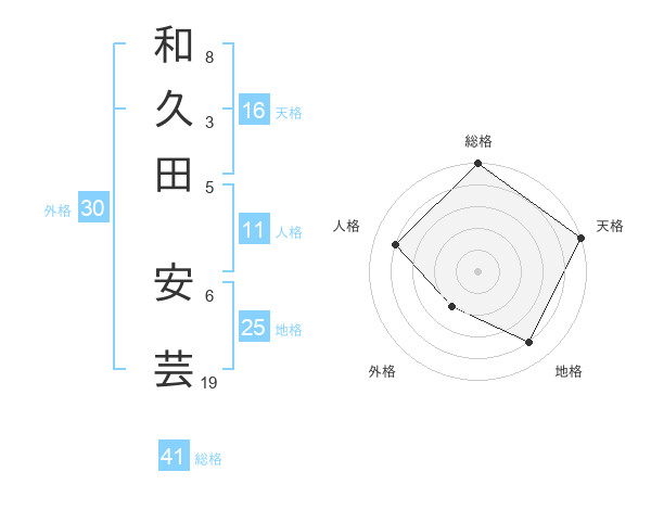 和久田 安芸さんを姓名の画数から五運を鑑定