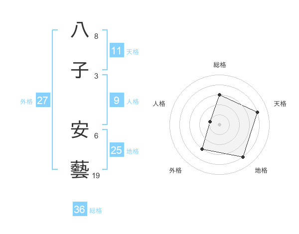 八子 安藝さんの総格は36画の3点!