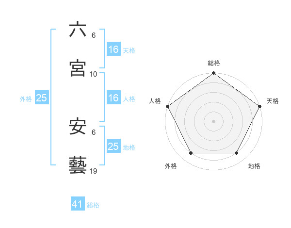 六宮 安藝さんを姓名の画数から五運を鑑定