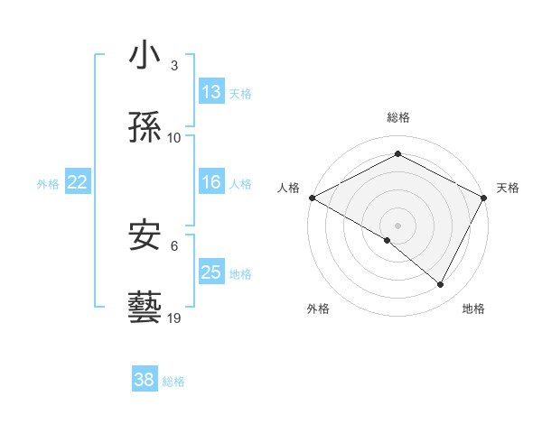 小孫 安藝さんを姓名の画数から五運を鑑定