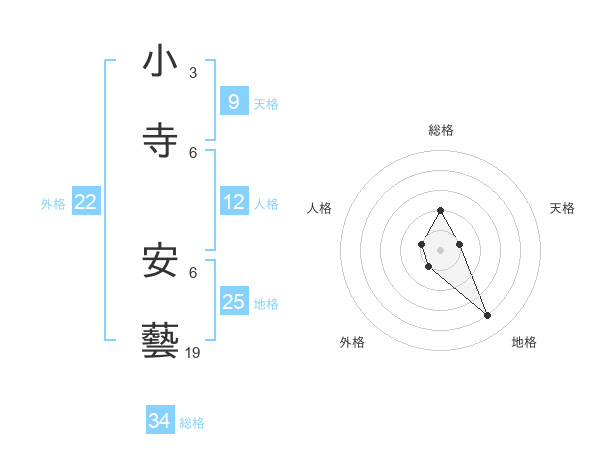 小寺 安藝さんの総格は34画の2点!