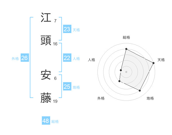 江頭 安藤さんを姓名の画数から五運を鑑定