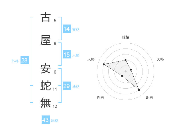 古屋 安蛇無さんの総格は43画の2点!
