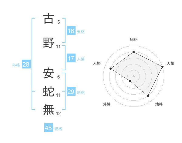古野 安蛇無さんの地格は29画の4点!