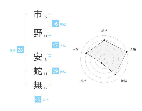 市野 安蛇無さんを姓名の画数から五運を鑑定