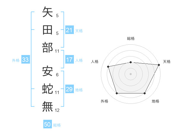 矢田部 安蛇無さんを姓名の画数から五運を鑑定