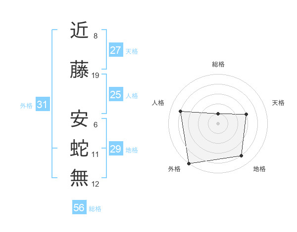 近藤 安蛇無さんを姓名の画数から五運を鑑定