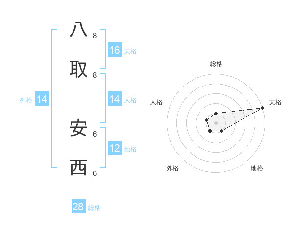 八取 安西さんの総格は28画の1点!
