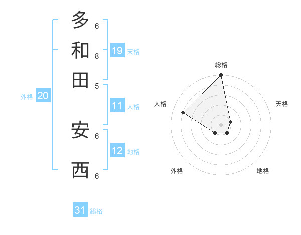 多和田 安西さんの総格は31画の5点!
