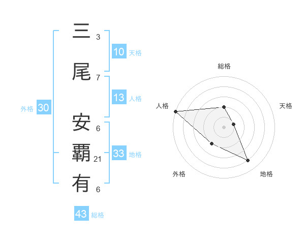 三尾 安覇有さんを姓名の画数から五運を鑑定