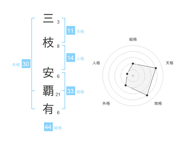 三枝 安覇有さんを姓名の画数から五運を鑑定