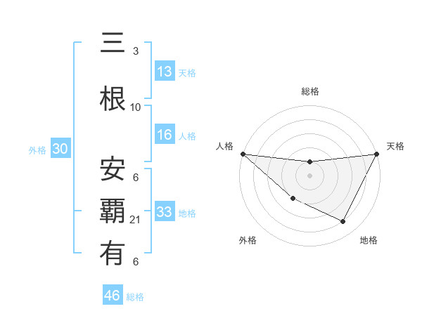 三根 安覇有さんを姓名の画数から五運を鑑定