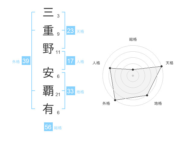 三重野 安覇有さんを姓名の画数から五運を鑑定