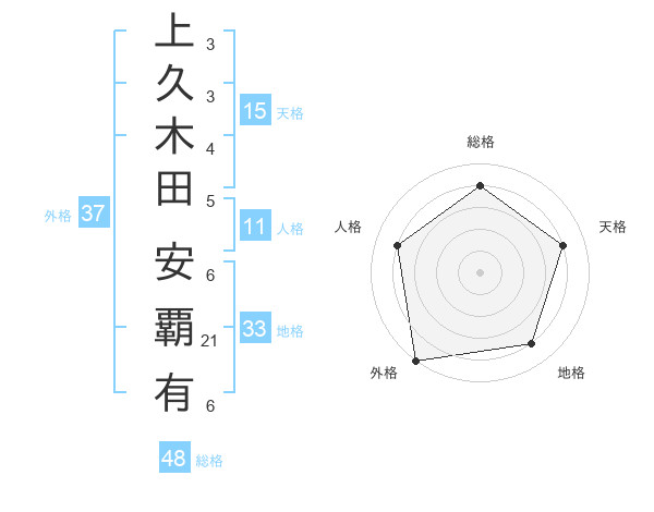 上久木田 安覇有さんを姓名の画数から五運を鑑定