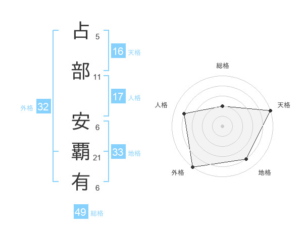 占部 安覇有さんの外格は32画の5点!