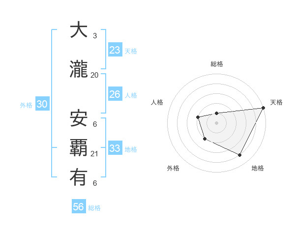 大瀧 安覇有さんを姓名の画数から五運を鑑定