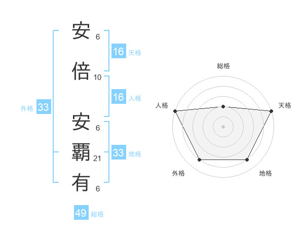 安倍 安覇有さんを姓名の画数から五運を鑑定