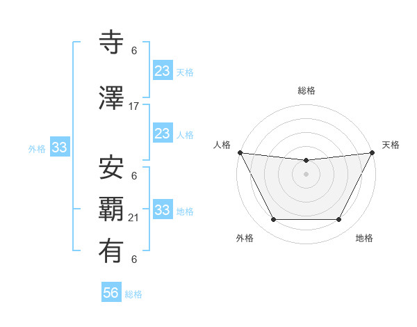 寺澤 安覇有さんの天格は23画の5点!