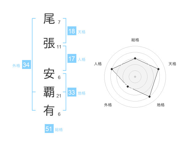 尾張 安覇有さんの総格は51画の3点!