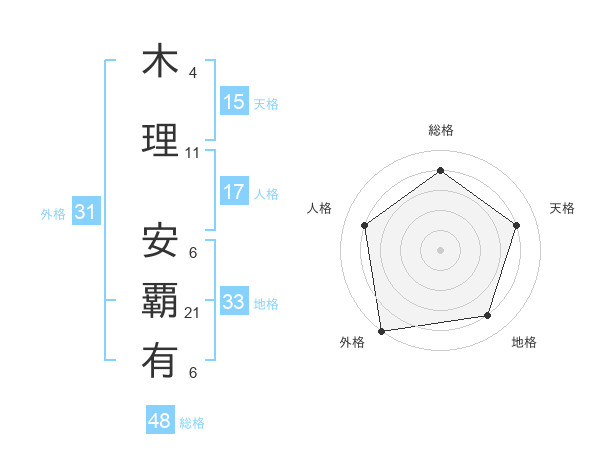 木理 安覇有さんの総格は48画の4点!