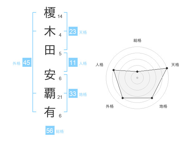 榎木田 安覇有さんの外格は45画の4点!