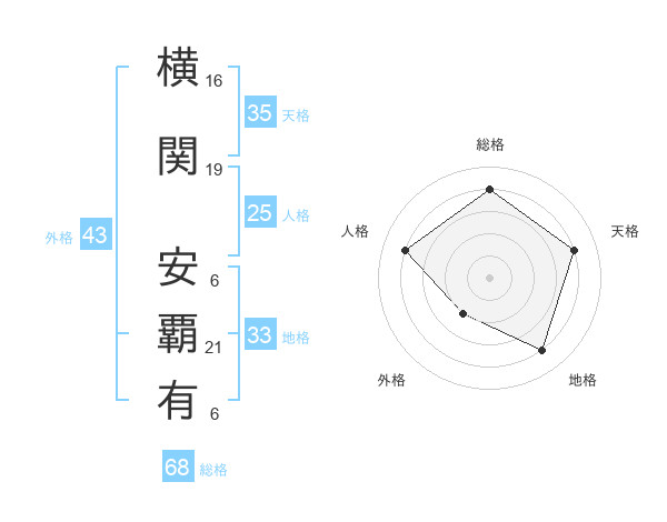 横関 安覇有さんを姓名の画数から五運を鑑定