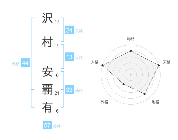 沢村 安覇有さんを姓名の画数から五運を鑑定