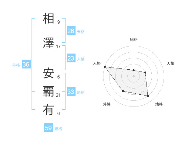 相澤 安覇有さんの総格は59画の1点!