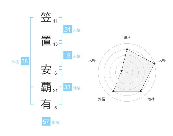 笠置 安覇有さんの総格は57画の4点!