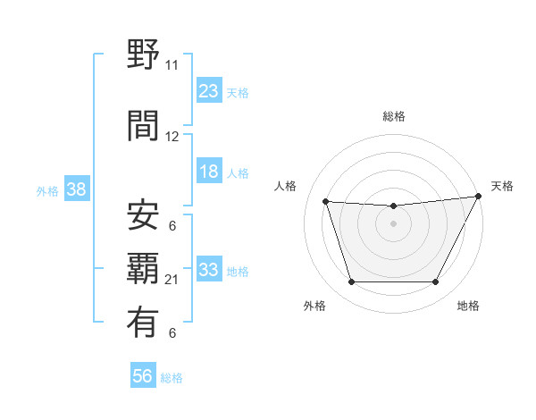 野間 安覇有さんを姓名の画数から五運を鑑定