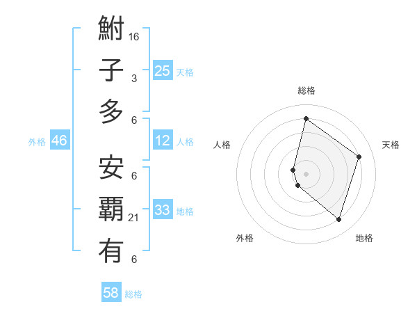 鮒子多 安覇有さんを姓名の画数から五運を鑑定