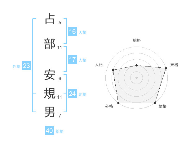 占部 安規男さんの天格は16画の5点!