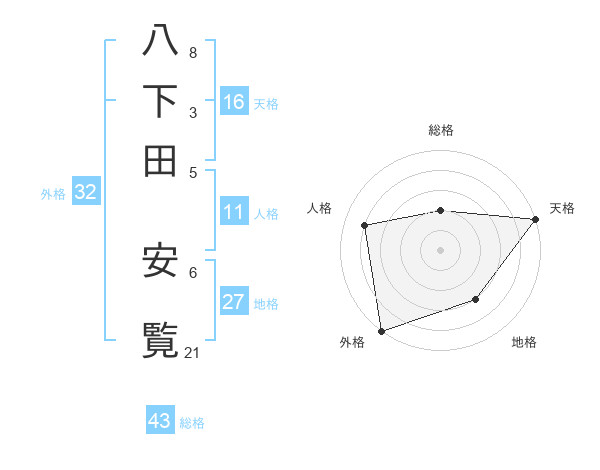 八下田 安覧さんを姓名の画数から五運を鑑定