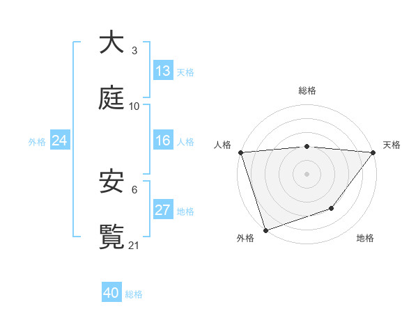 大庭 安覧さんの天格は13画の5点!