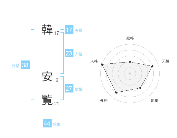 韓 安覧さんの総格は44画の2点!