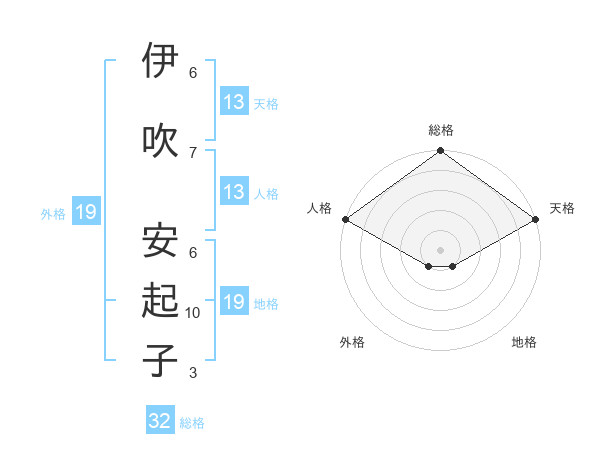 伊吹 安起子さんを姓名の画数から五運を鑑定