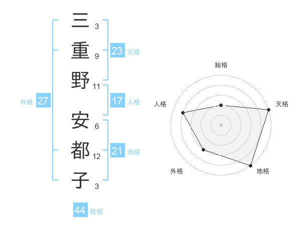 三重野 安都子さんを姓名の画数から五運を鑑定