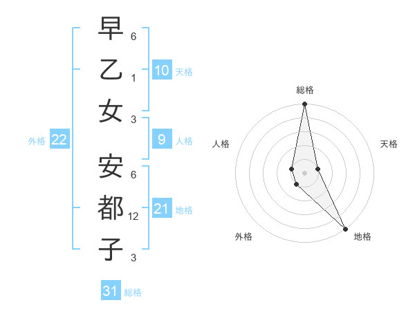 早乙女 安都子さんを姓名の画数から五運を鑑定