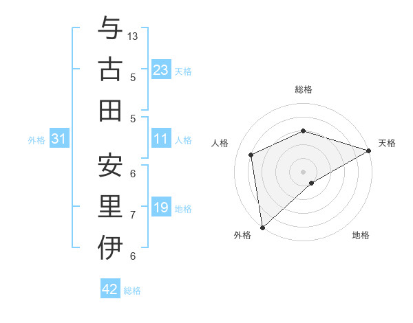 与古田 安里伊さんを姓名の画数から五運を鑑定