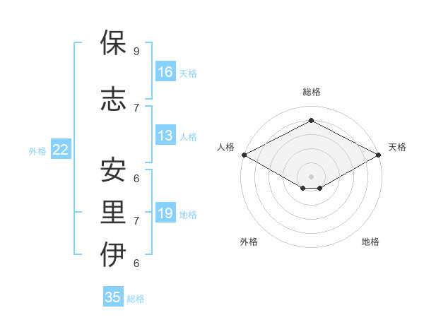 保志 安里伊さんを姓名の画数から五運を鑑定