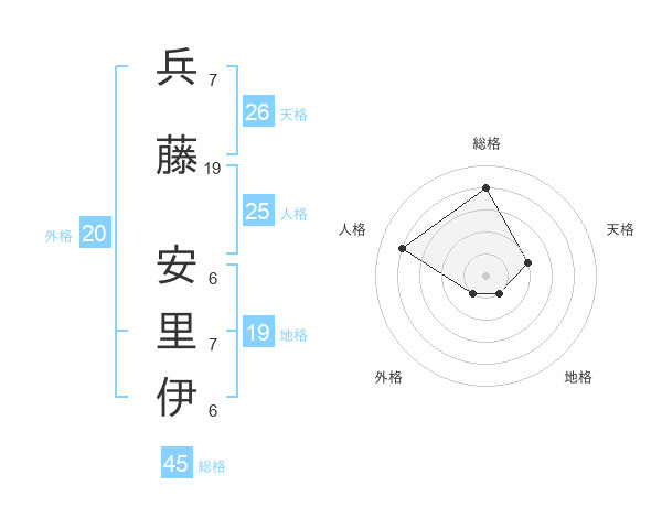 兵藤 安里伊さんを姓名の画数から五運を鑑定